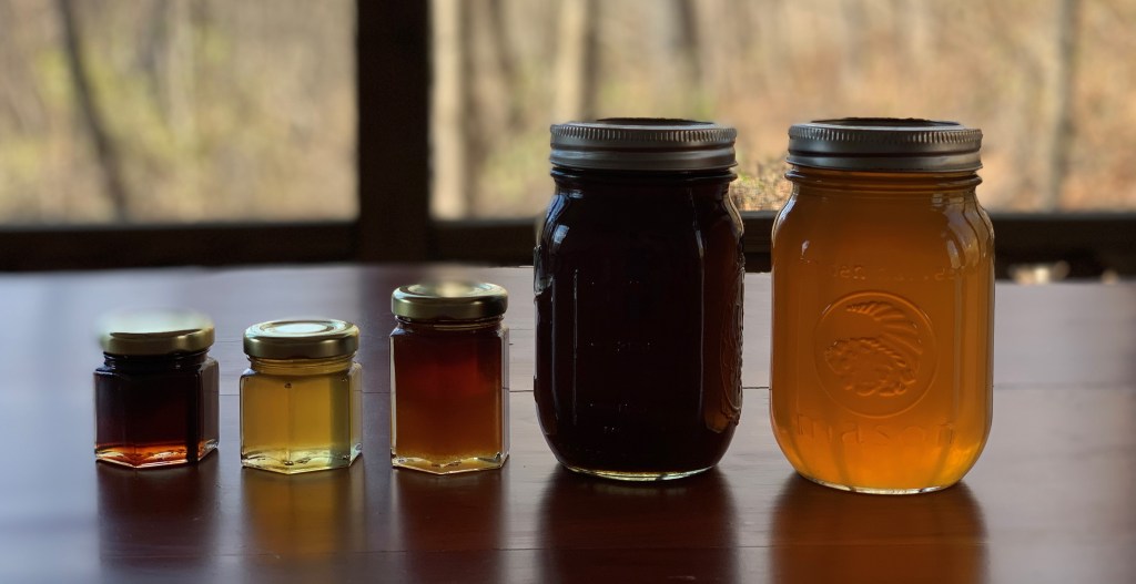 As mentioned above, our White Clay Honey harvest is typically mixed together so the honey pretty much tastes the same from year to year. For other beekeepers, their hives are used specifically to pollinate specific plants, like blueberry plants for example. When that happens, the honey has a blueberry like flavor!