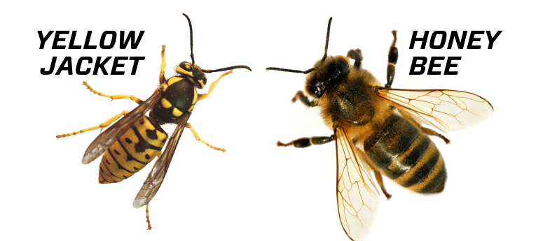 Yellow jackets have a similar look to honey bees and the two are often confused as each other.